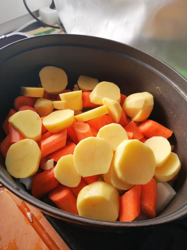 - Les légumes coupés en gros cubes (1 cm mini mais plus, c’est mieux)